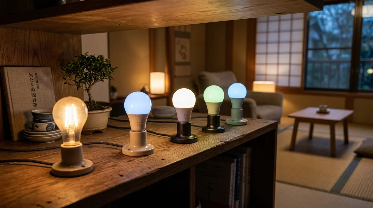 この記事では、日本市場で実際に入手できるスマート電球5製品を、通信規格・カラー性能・価格・対象ユーザーの観点から比較する。スマートホームの全体構成を知りたい場合はHub記事を、照明のシーン設計まで深掘りしたい場合はシーン制御ガイドを併せて読んでほしい。